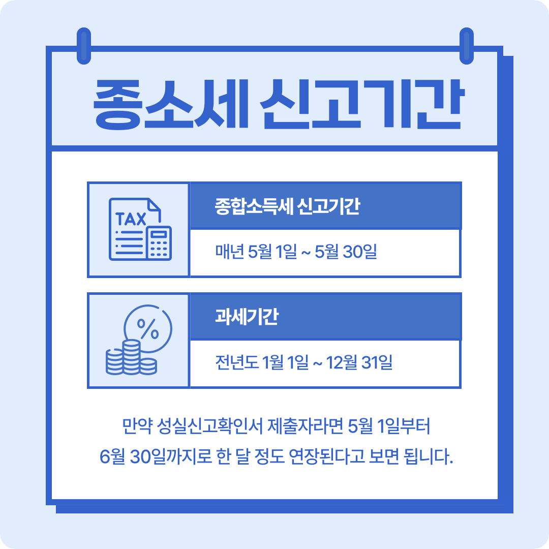 (종합소득세 신고 기간은 매년 5월 1일부터 5월 31일까지입니다.)