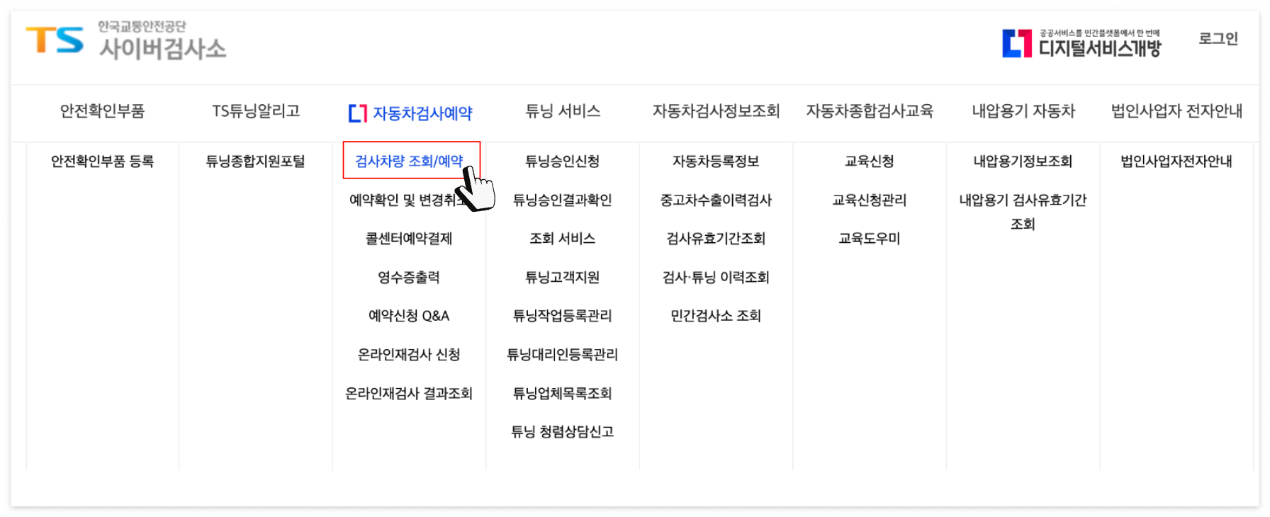 - [자동차검사예약]-[검사차량 조회/예약] 탭 클릭