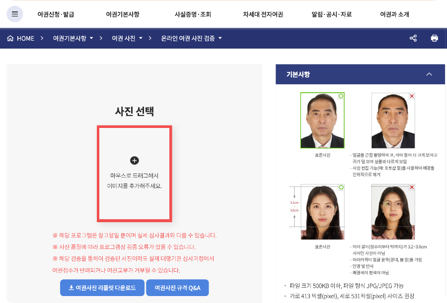 - 여권 사진은 규정에 맞게 촬영해야 합니다.